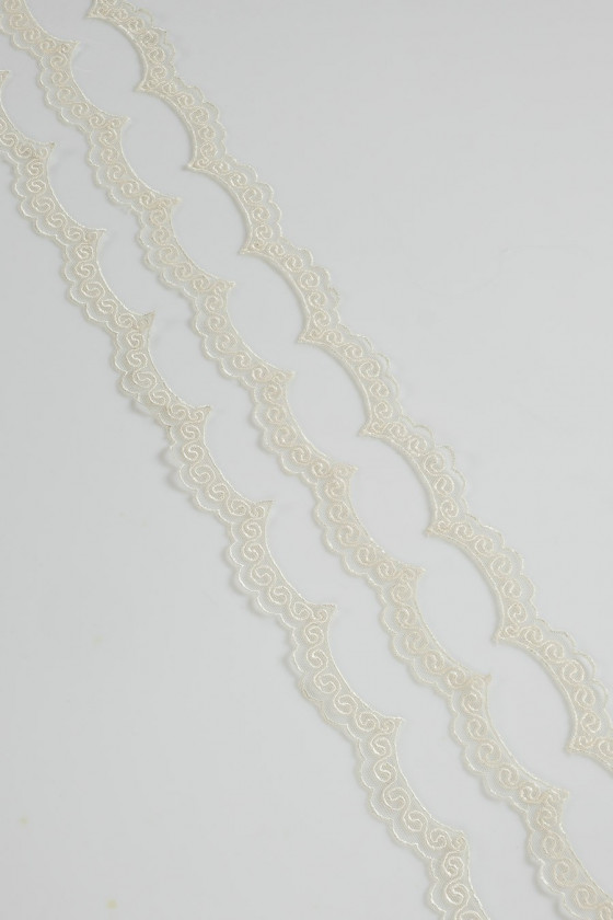 Itaalia pitsiteip ecru värvi, viimistletud hambaga ühel küljel. Laius: 2 cm
