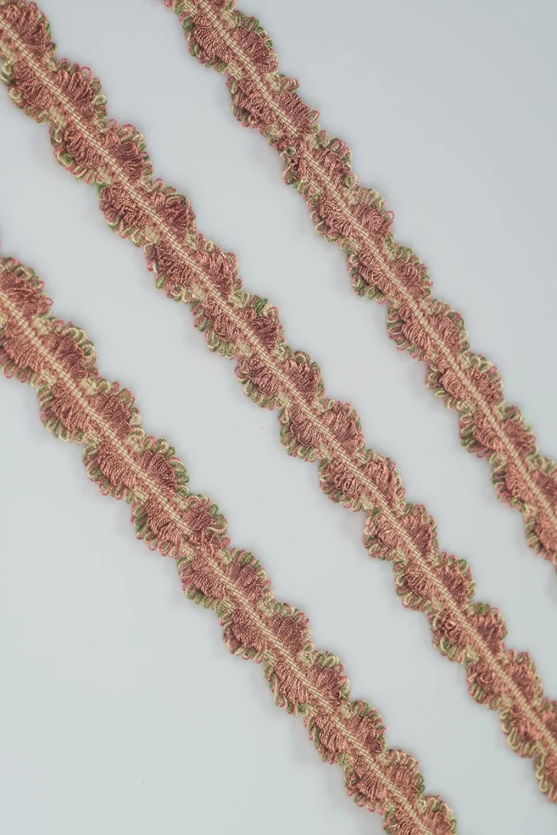 Määrdunud roosa ja pistaatsia värvi galeriilint, mis sobib ideaalselt riiete viimistlemiseks. Lindi laius on 2 cm.
