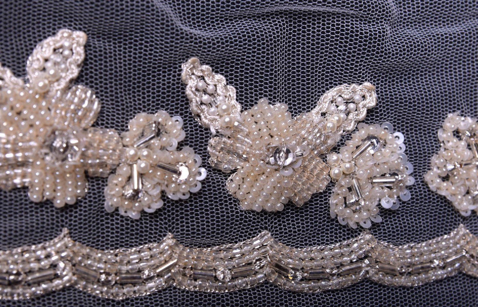 Kaunilt helmestatud lint. See sobib ideaalselt pulmade ja pidulike kleitide viimistlusega. Tülli laius on umbes 30 cm, helmeste laius on umbes 5 cm