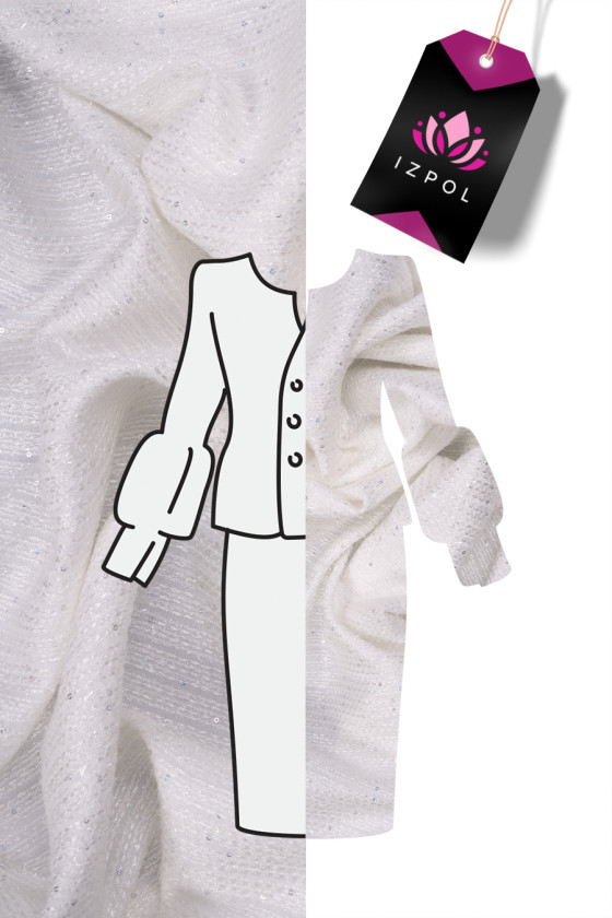 Itaalia chaneli kostüümikangas kreemikas värvitoonis. Sile kangas horisontaalsete õmblustega 1 cm lai, kaunistatud väikeste litritega. Keskmise paksusega, mitteelastne, pehme kangas. Ideaalne kleidi, seeliku õmblemiseks või dekoratiivsetel eesmärkidel.