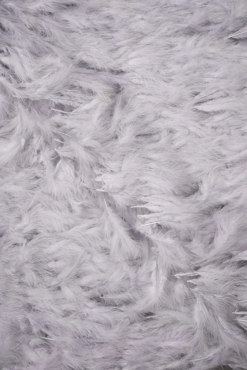 Fenomenaalne hall õhtukangas - võrk on tihedalt kärbitud umbes 15 cm pikkuste kukesulgedega - õmbleme selle ümbermõõduliselt. Kangas on kergelt läbipaistev, 115 cm lai, suled on pehmed ja kohevad.