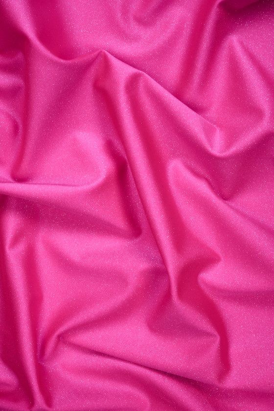 Elastne lycra silmkoekangas neoonroosas hõbedase säraga (ei kukuks maha). Tiheda, tiheda kudumisega kangas, väga elastne - ideaalne inimestele, kellele meeldib keha liibuv riietus. See sobib suurepäraselt tantsu- või õhturiiete ning ujumisriiete õmblemiseks, kuna see on mugav, kaunilt läikiv ja kiiresti kuivav.