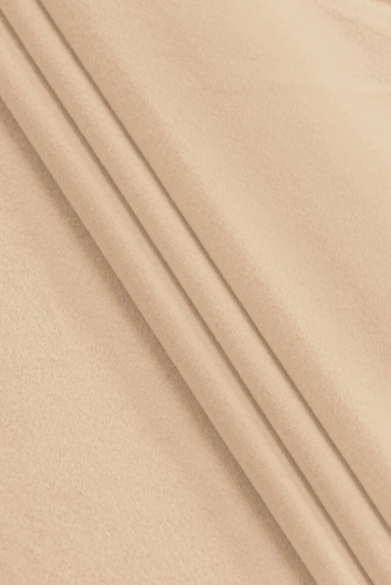 Naturaalsest villast kootud Itaalia mantelkangas, millele on lisatud helebeeži kašmiiri. Kangas on keskmise paksusega, pehmelt lamav ja paindumatu. See sobib ideaalselt ülerõivaste (mantel, jope, vest) jaoks, kuna soojendab ja laseb samal ajal nahal hingata. Kašmiiri segu lisab selle õilsust ja õrna sära. Ilus ja klassikaline pakkumine inimestele, kellele meeldivad ajatud kangad.