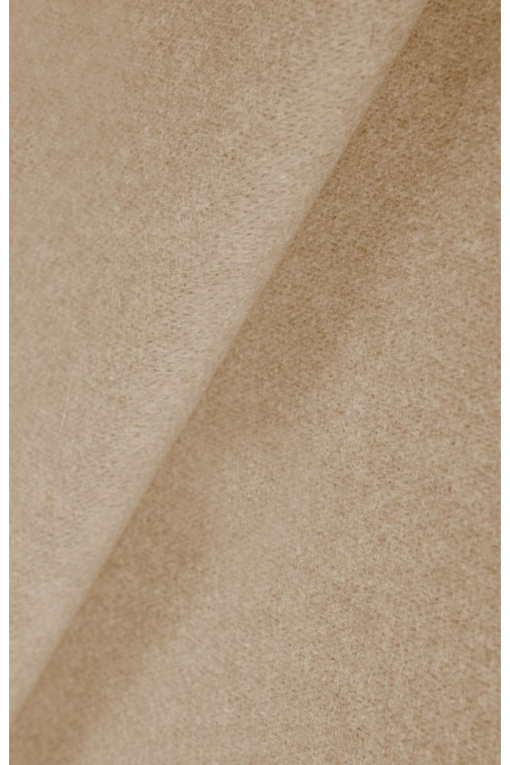 Itaalia mantelkangas, mis on kootud naturaalsest villast, millele on lisatud helebeeži kašmiiri - melanž. Villased kangad sobivad ideaalselt ülerõivasteks (mantel, jope, vest), sest need soojendavad ja lasevad samal ajal nahal hingata. Kašmiiri lisamine muudab selle veelgi paremaks isolatsiooniomaduseks, kuna kašmiir on soojem kui lambavill.