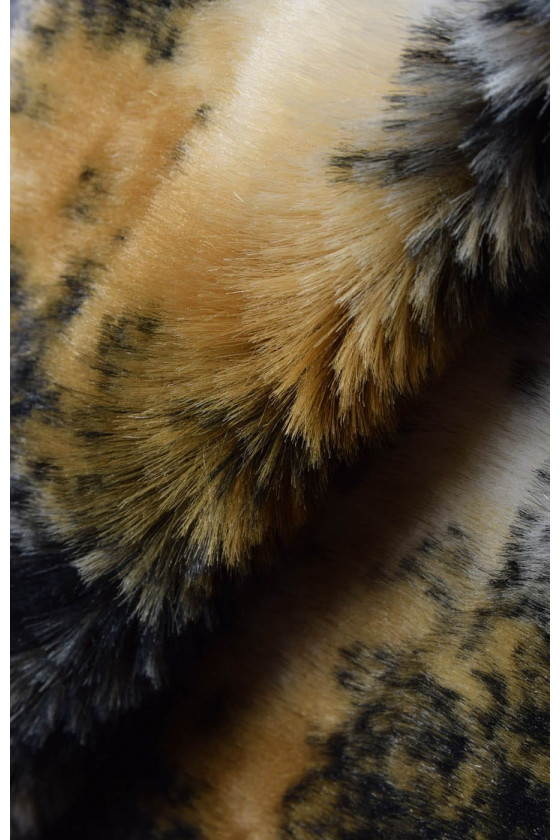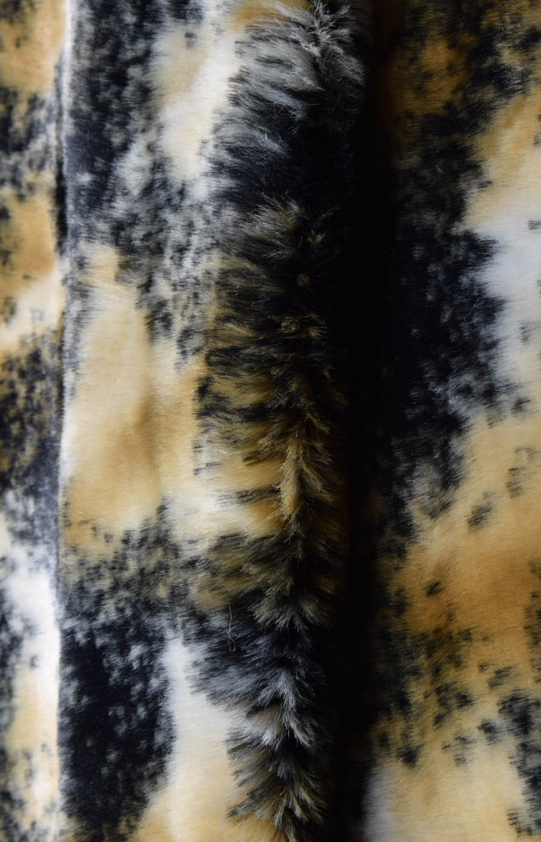 Itaalia imitatsioon karusnahk mustas, beežis ja kreemis, millel on plaastritaolised motiivid. Kangas on paksem, kergelt jäik ja umbes 0,5 cm pikkune kuhi. Ideaalne talvemantli, jope, vesti õmblemiseks või viimistluseks teistele kangastele. Seda saab kasutada ka dekoratiivsetel eesmärkidel.