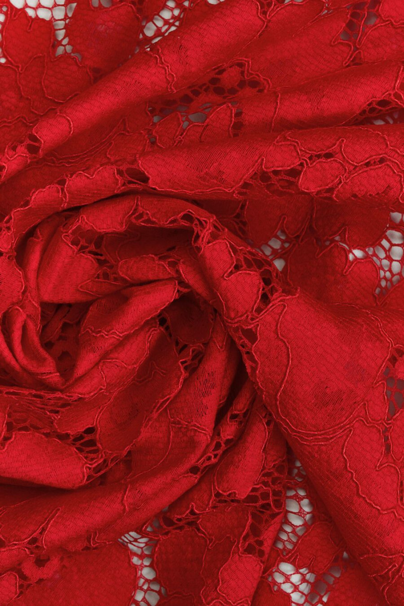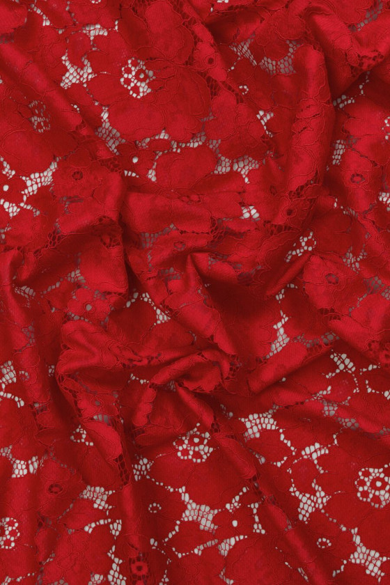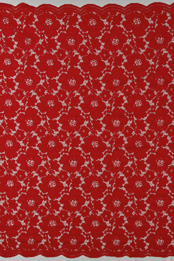Itaalia pits, mille motiiv on üsna suured lilled punaselt. Tihe, õie muster, mis koosneb kahe mõõtmega lilledest: suur lill on 14 cm * 14,5 cm ja väike on 6 cm * 6,5 cm. Kangas on pehme, mitteelastne, matt ja viimistletud mõlemalt poolt dekoratiivse hambaga. Huvitav ettepanek inimestele, kellele meeldivad klassikalised, tugevad värvid. See sobib suurepäraselt nii ametlike rõivaste kui ka igapäevaste rõivaste jaoks.