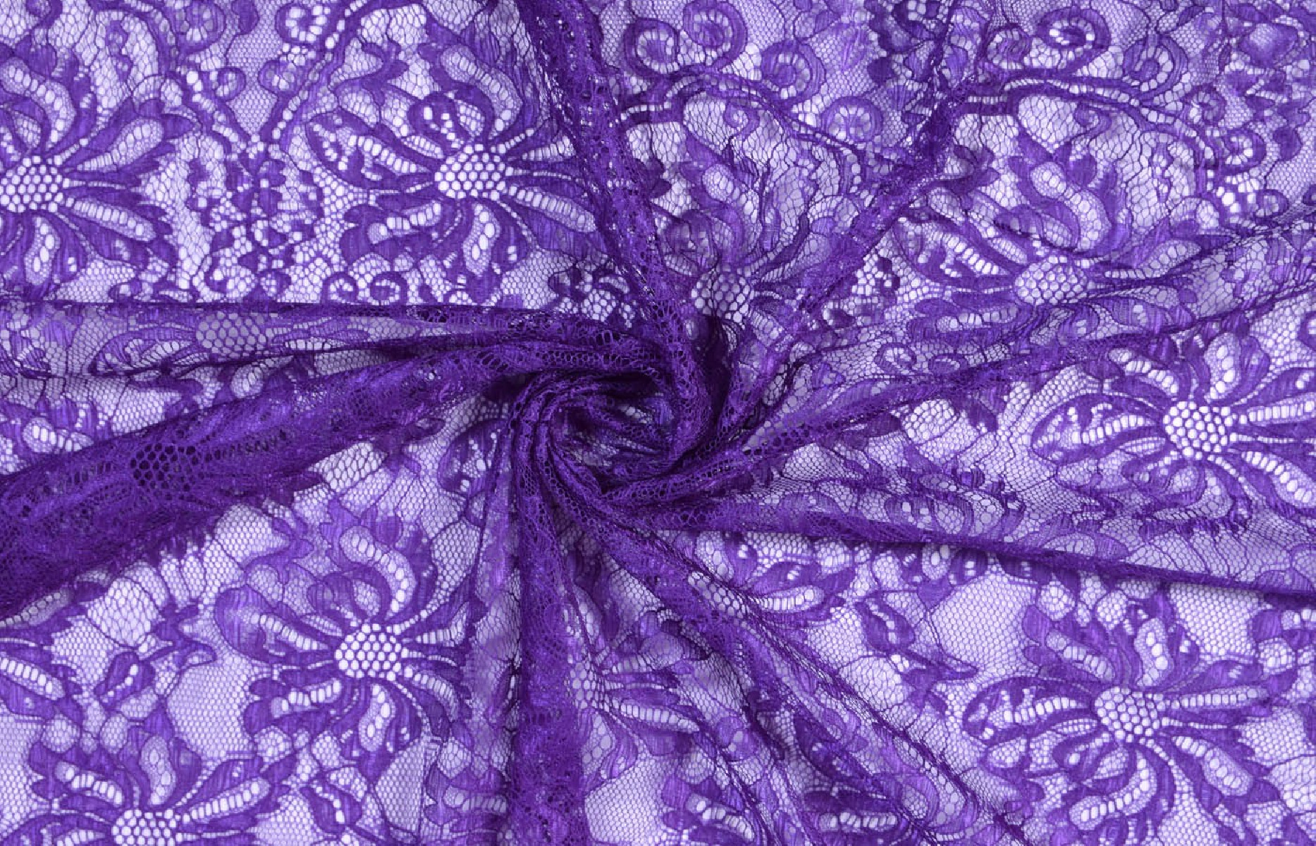 Õhtune pits lillas, on korratava kupongiga mõõtmetega 110 cm * 150 cm. Ühepoolne viimistletud hambaga, elastne.