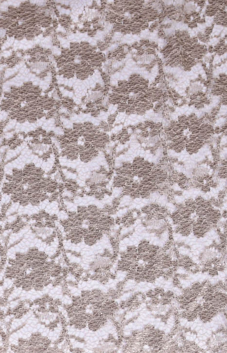 Tihedalt tikitud pits, mille lillemuster on külm beež.