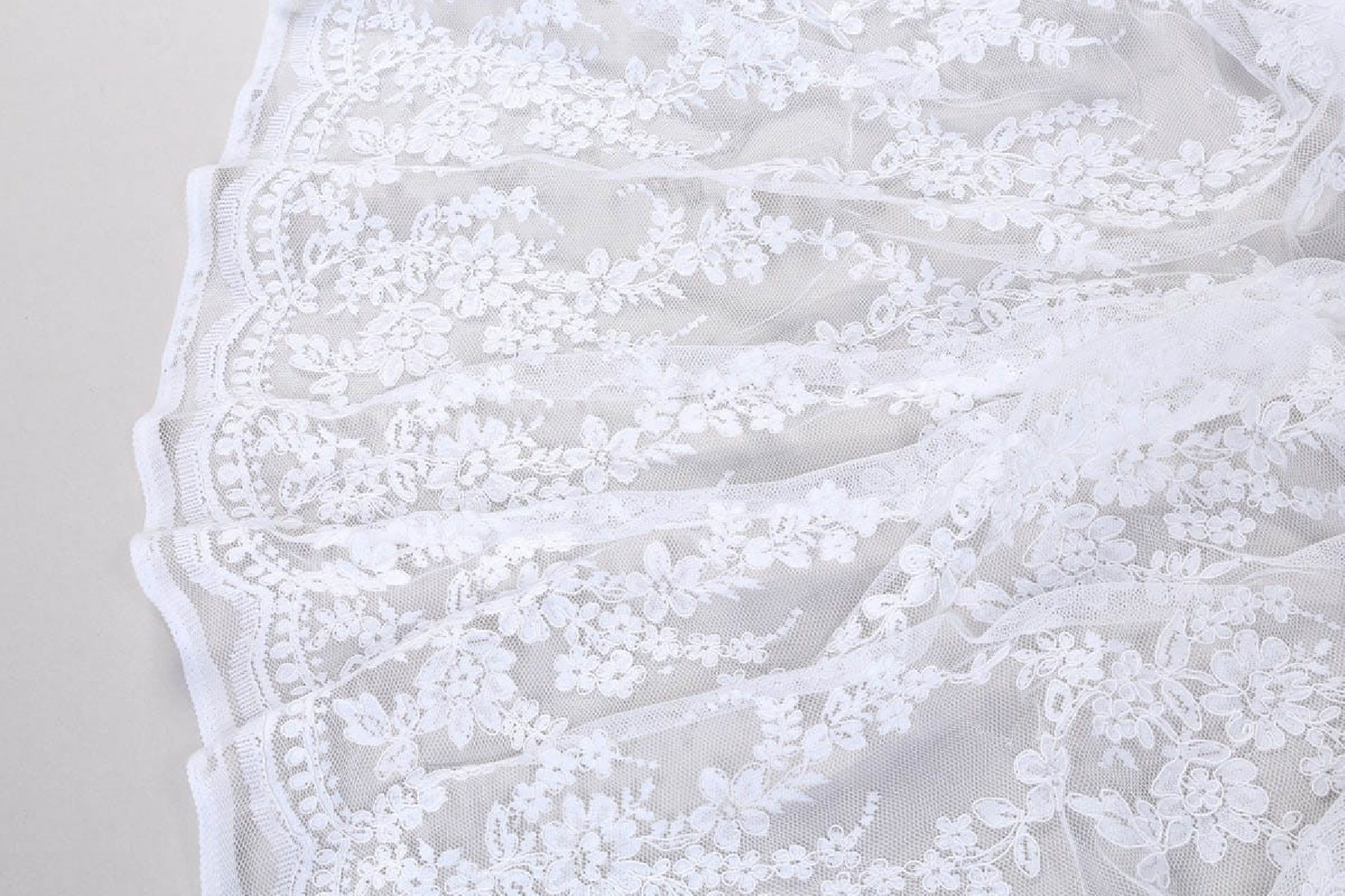 Pulmapits - tikitud lilled tüllile. Pulmakleitide või pluuside jaoks mõeldud kangas.