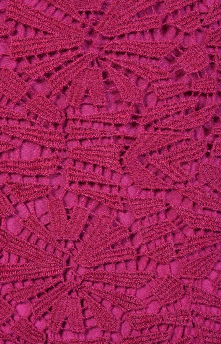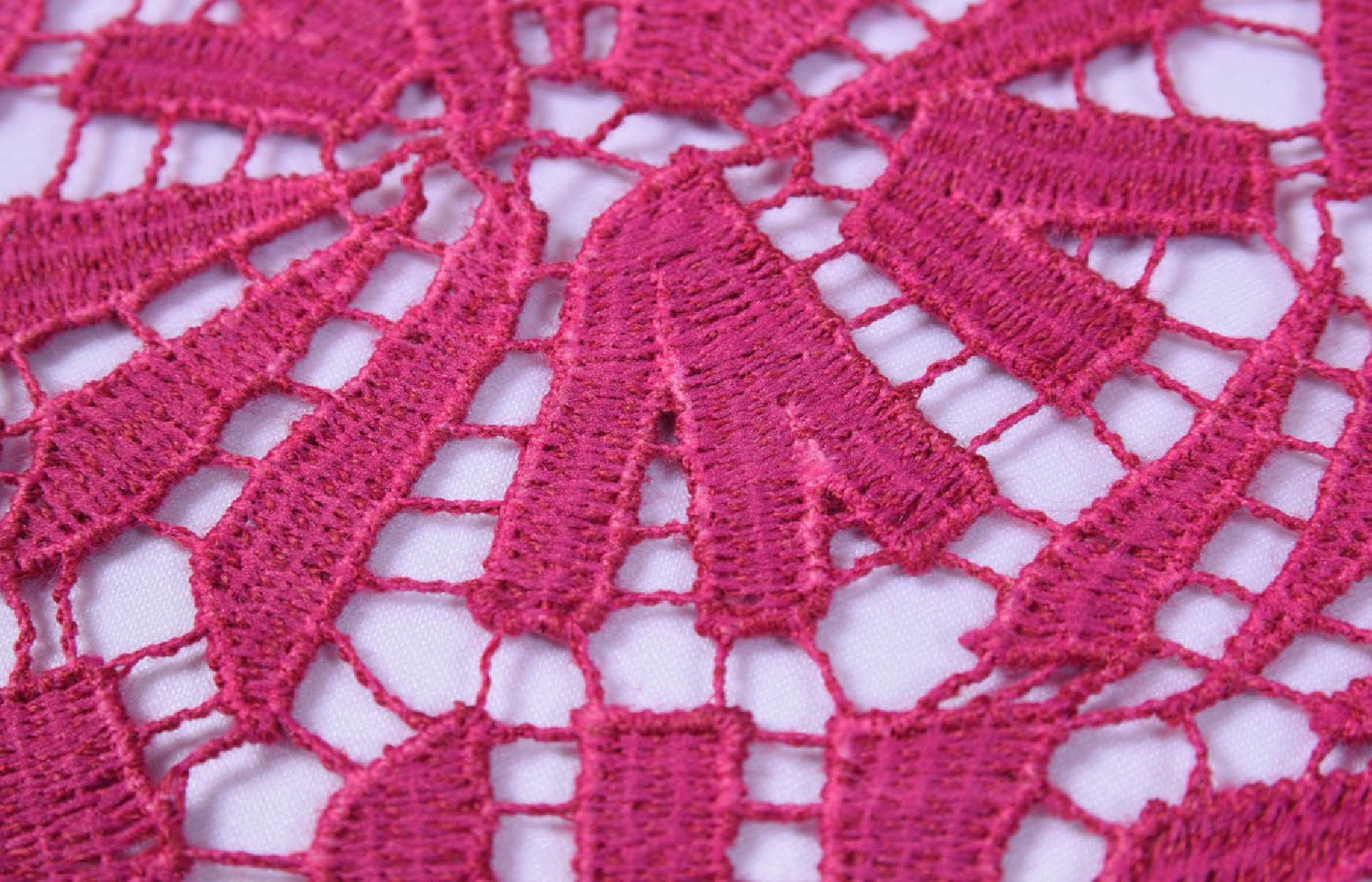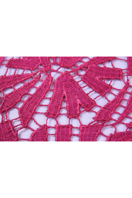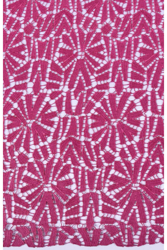 Itaalia guipure kangas amarandi värvi kupongides mõõtmetega 110 cm* 90 cm ja 70 cm* 90 cm. Ilus, tihe lillemuster, mis on ühendatud ämblikuvõrguga, on mõlemalt poolt kangas viimistletud väikese dekoratiivse hambaga. Kangas sobib ideaalselt inimestele, kellele meeldivad vaigistatud värvid. See sobib suurepäraselt elegantse kleidi, pluusi, seeliku õmblemiseks või viimistluseks teistele kangastele.