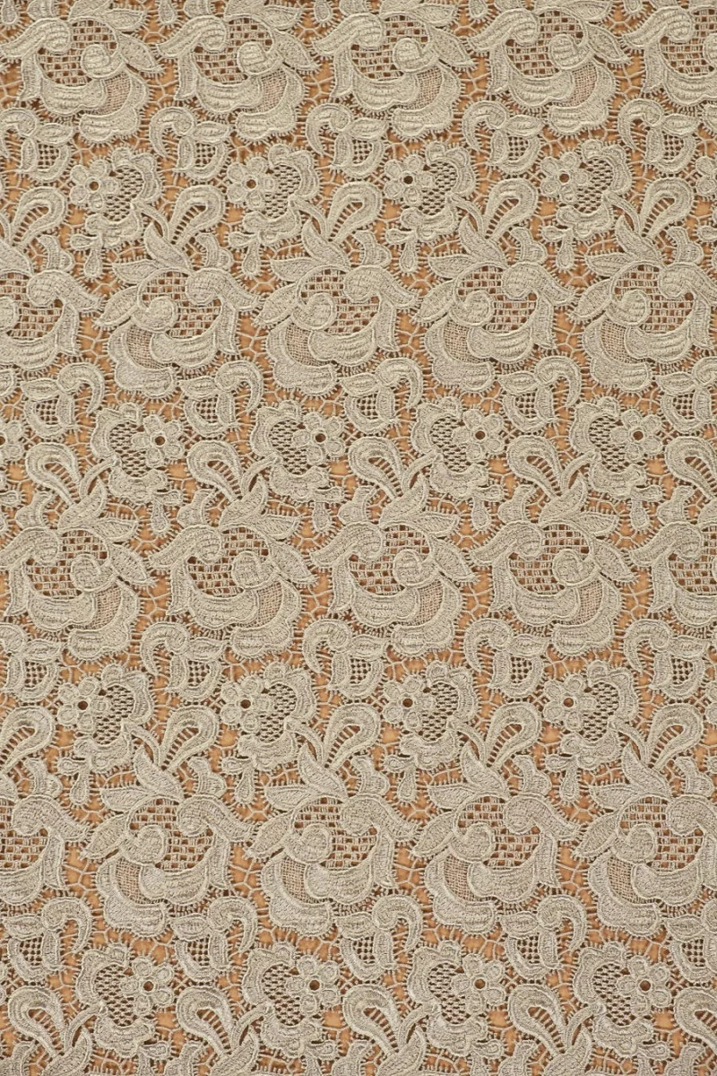 Gupure pits klassikalise lillemustriga külmas beežis värvitoonis. Ilusa efekti saavutamiseks soovitame valida voodri, nt siidsatiinist.