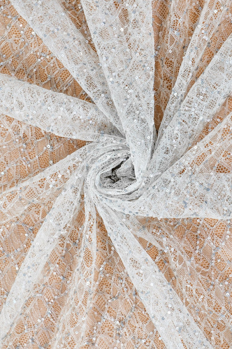 Õhuke, õrn pits hall-hõbedane - tikitud väikeste mitmevärviliste litrite ja hõbedase lurex-niidiga. Kangas on mõlemalt poolt viimistletud hambaga. Ideaalne kleitide või pluuside jaoks