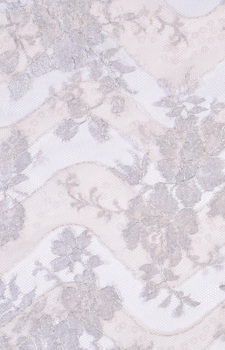 Fenomenaalne pits hall-beežis, millel on lainete ja läikiva niidiga lillede motiiv. Iga teine laine on vooderdatud siidist šifooniga ja kaunistatud läbipaistvate litritega. Paela laius on 80 cm. See on läbipaistev, kerge, mitteelastne ja särab kaunilt. Täiuslik kleitide või pluuside jaoks.