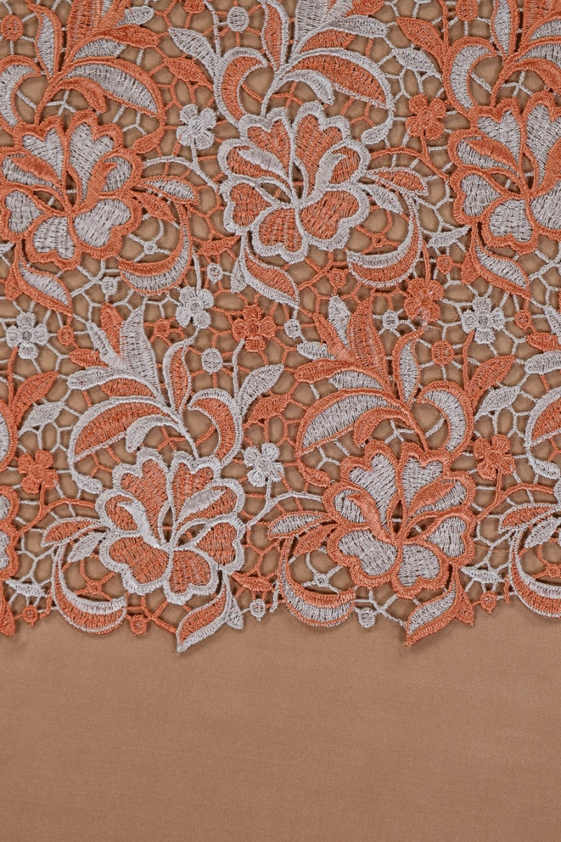 Guipure pits oranžikashalli värvi, kootud viskoosist ja polüamiidlõngast. Ilusa efekti saavutamiseks soovitame valida voodri, nt siidsatiinist.