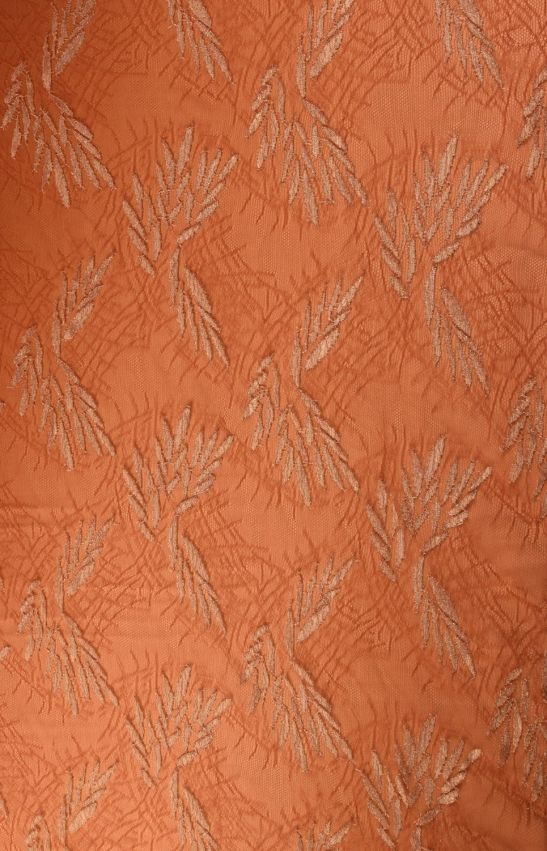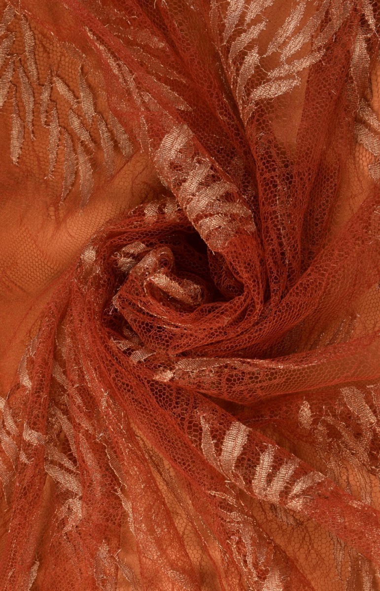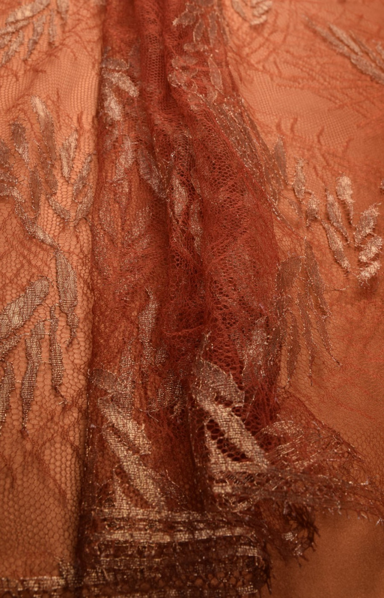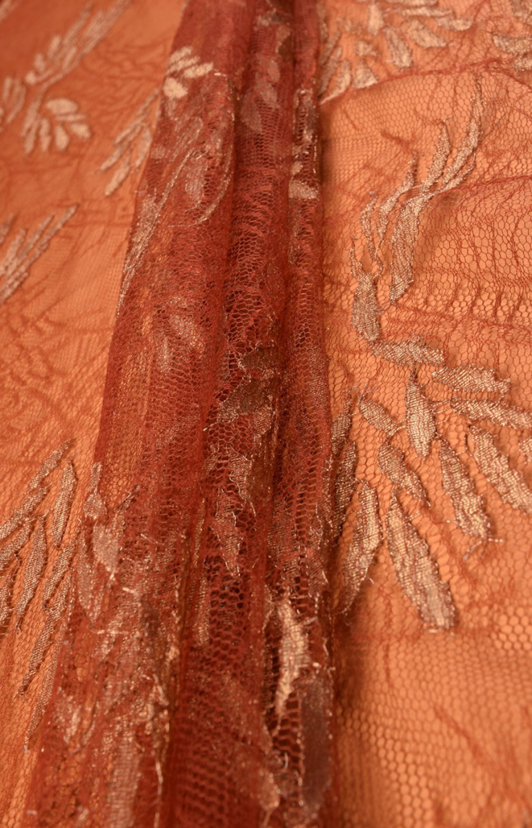 Ilus prantsuse pits punakaskuldse värviga lurex-niidiga. Seda saab kasutada pluusi, kleidi või sisetükkide õmblemiseks. Soovitame selle jaoks siidist satiinvoodrit.