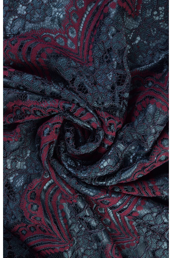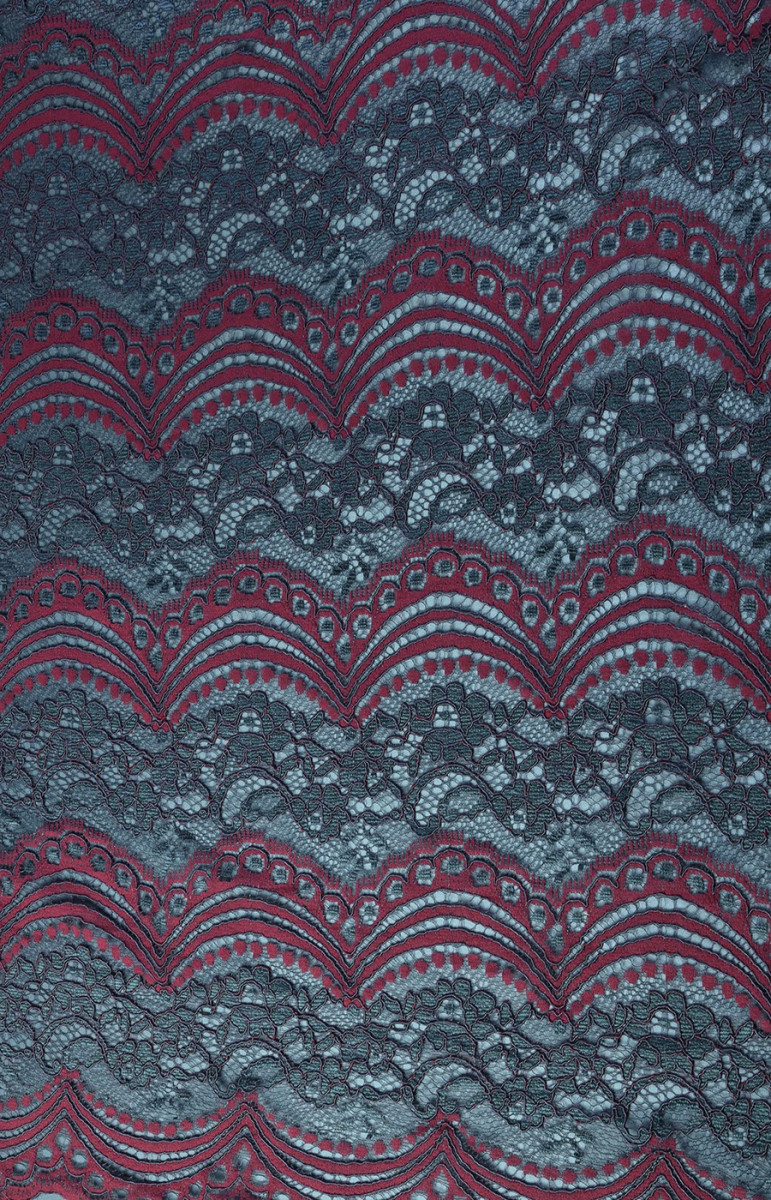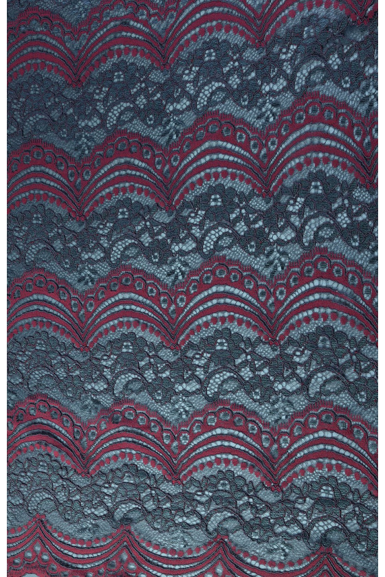 Burgundia ja rohelistest niitidest kootud prantsuse pits. Tervik loob umbes 15 cm laiuste triipude-lainete kompositsiooni.
