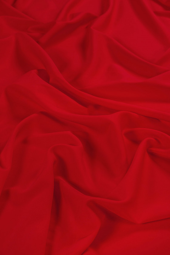 Itaalia cadi tüüpi polüesterkangas punase värviga. Kangas on läbipaistmatu, voolav, matt ja mitteelastne. See on keskmise paksusega. Ideaalne kleitide, seelikute ja pluuside jaoks.