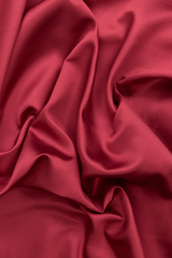 Itaalia polüesterkangas taffeta siidiga, kahepoolne - parem pool fuksianiidist, vasak pool Burgundia niidist. Taffeta on õhuke, kuid jäik kangas, millel on iseloomulik õrn sära, kangal on lihtne, soonikkoes kudumine, siidi lisamine annab kangale elegantsuse. Ideaalne pidulike rõivaste jaoks - kleidid, seelikud ja õhukesed mantlid.