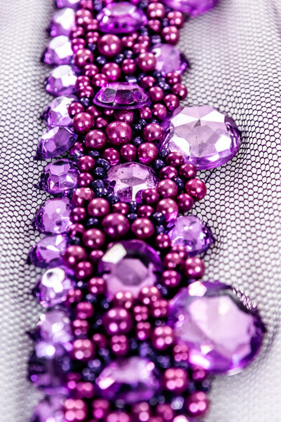 Pudukaupade kasutamine lilla kivide ja pärlite riba kujul. Pikkus: 35 cm, laius: 3,5 cm. Taotlus võib olla ilus viimistlus ametlikele kleitidele.