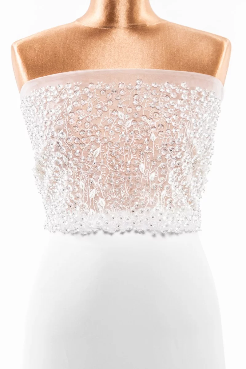 Ilus, rikkalikult kaunistatud pulmaaplikatsioon korseti jaoks. Ideaalne pulmakleitide jaoks.