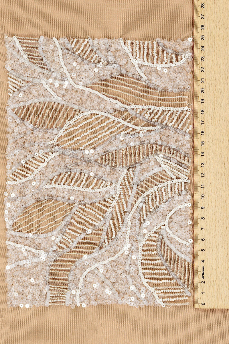 Korsetirakendus koosneb kolmest osast: esi- ja kahest tagaosast. Ilus motiiv lehtedest, mis on tihedalt kaunistatud litrite ja helmestega.