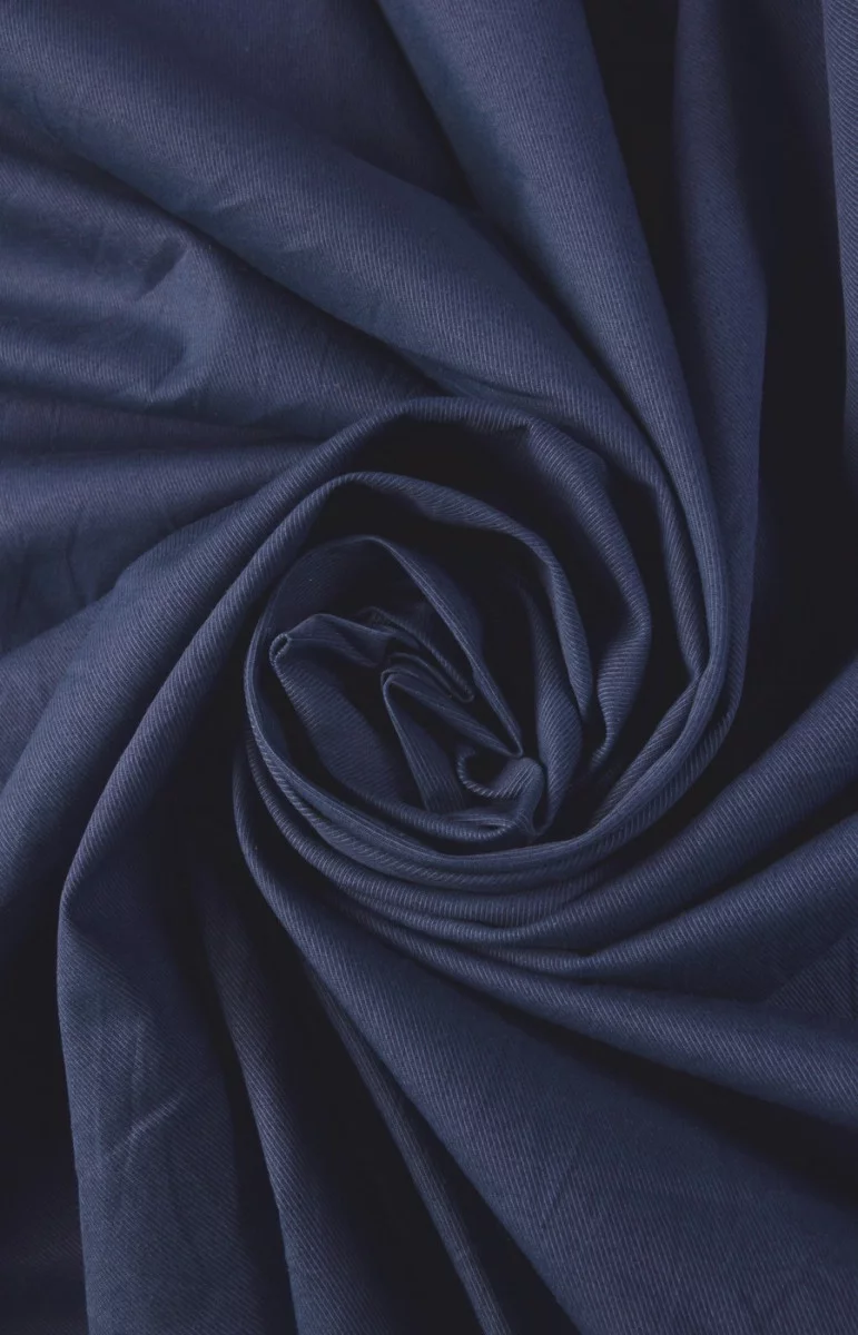 Itaalia puuvillane kangas tumesinine. Elastne, jäik toimse koega kangas - meenutab teksakangast. Ideaalne pükste, seeliku, kleidi või lühikeste pükste õmblemiseks.