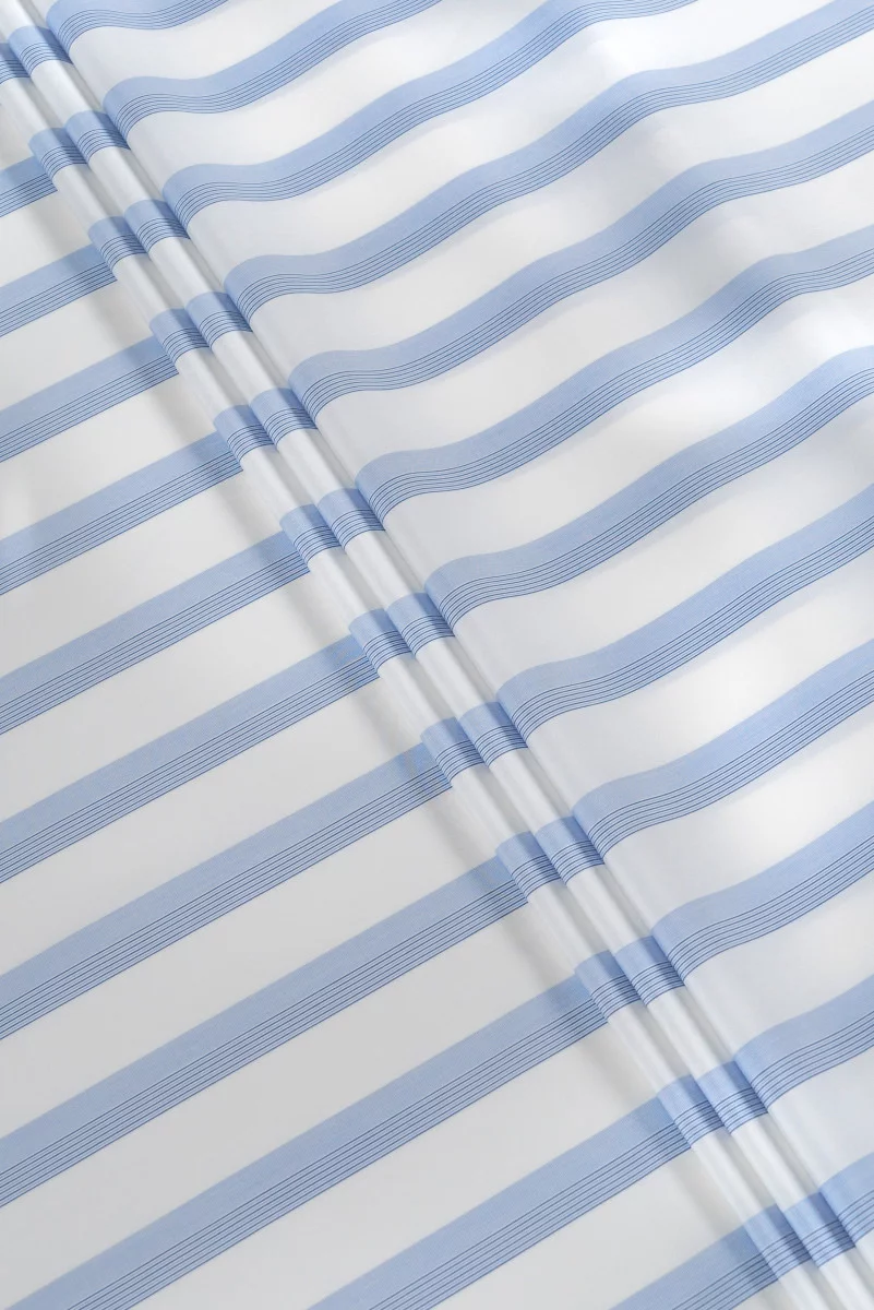Itaalia puuvillane särk kreemikas sinise triibu motiiviga, 2 cm lai. Mitteelastne, kergelt jäik kangas - ideaalne särgi, pluusi, kleidi õmblemiseks.