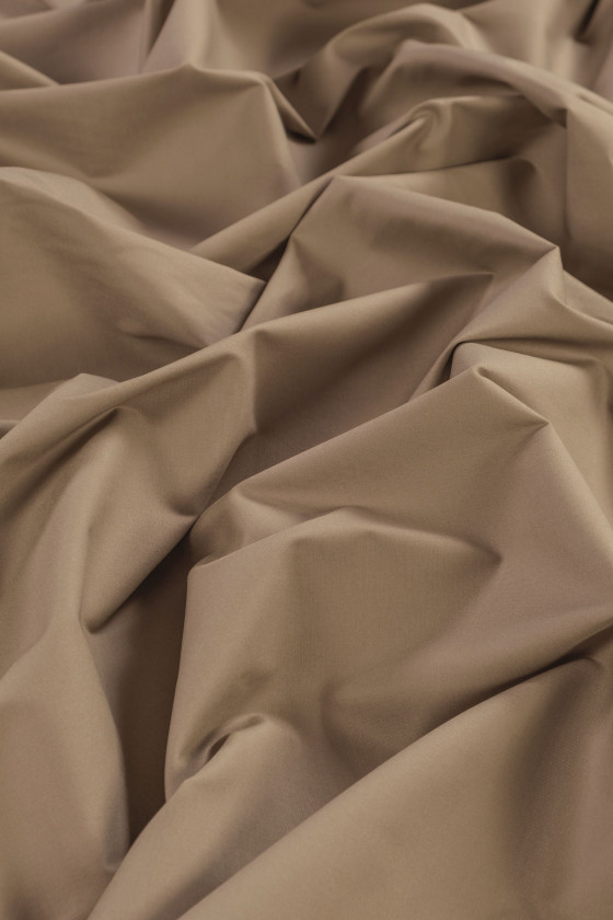 Itaalia puuvillane kangas, millele on lisatud hallikasbeeži värvi elastaani segu. Elastne, matt, jäik kangas - sobib suurepäraselt pükste, seeliku, lühikeste pükste või kleitide õmblemiseks.