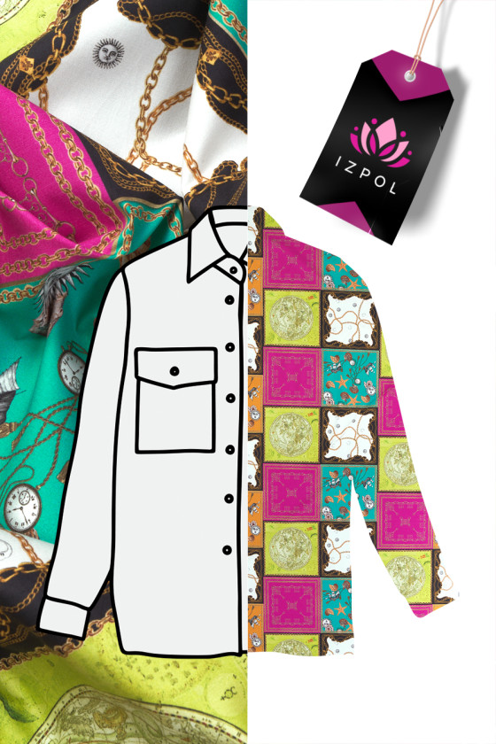 Itaalia särk puuvill, elastne, 17 cm laiuste värviliste ruutude motiiviga, mis loovad lapiteki motiivi. Kangas on õhuke, elastne, läbipaistmatu, kergelt jäik.