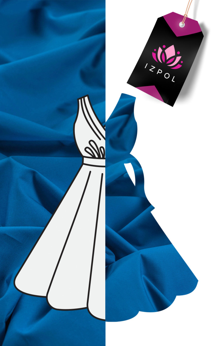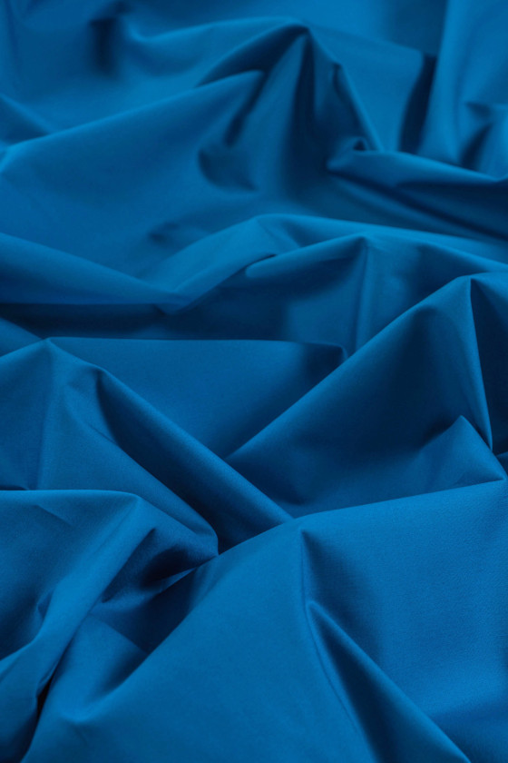 Itaalia puuvillane kangas, millele on lisatud sinist elastaani. Keskmise paksusega elastne kangas ja sile, kergelt läikiv kangas, mis on ette nähtud kleidi, seeliku või pükste õmblemiseks. Väga hea kvaliteediga naturaalne kangas, elastaani lisamine muudab selle kasutamise mugavamaks ja kortsub vähem. Asendamatu kangas kevadel ja suvel.