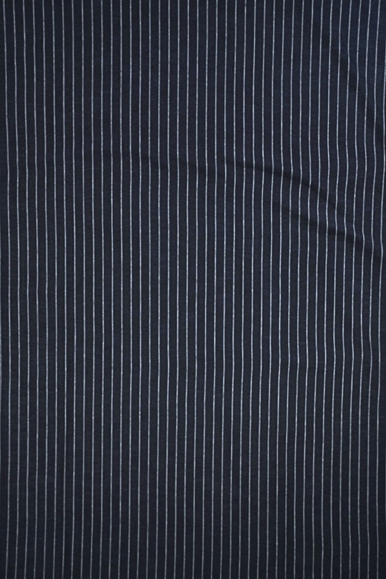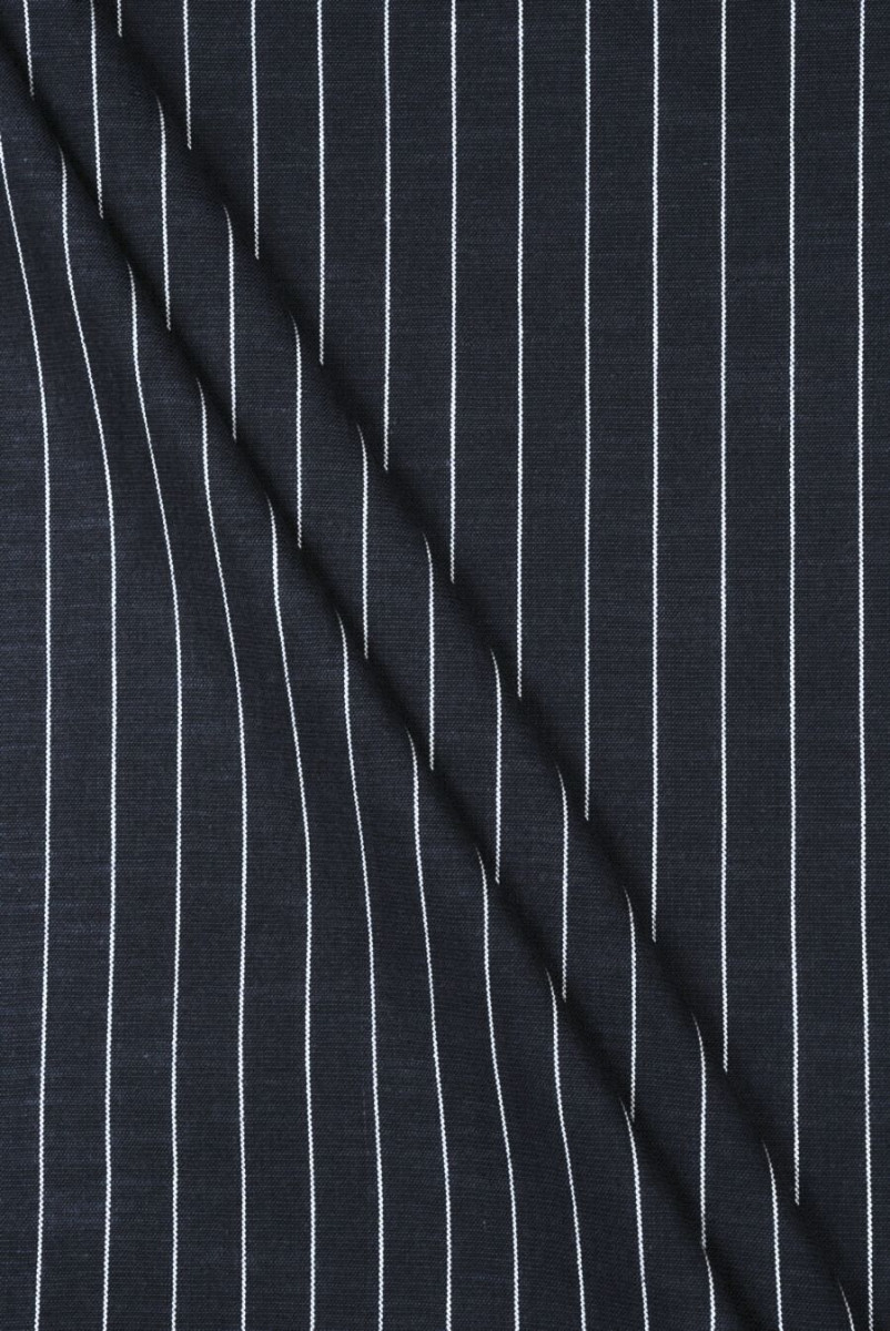 Puuvillast ja viskoosist kootud Itaalia kangas, mille motiiv on tumesinisel taustal valged triibud. Kitsad ribad asetatakse regulaarselt iga 2 cm järel. Lõdvema koega kangas, mis meenutab lina, on pehme, õhuke ja mitteelastne. Suurepärane pakkumine suveriiete jaoks, kuna see on väga hingav. Sellest saab luua pluuse, särke, kleite ja lühikesi pükse.