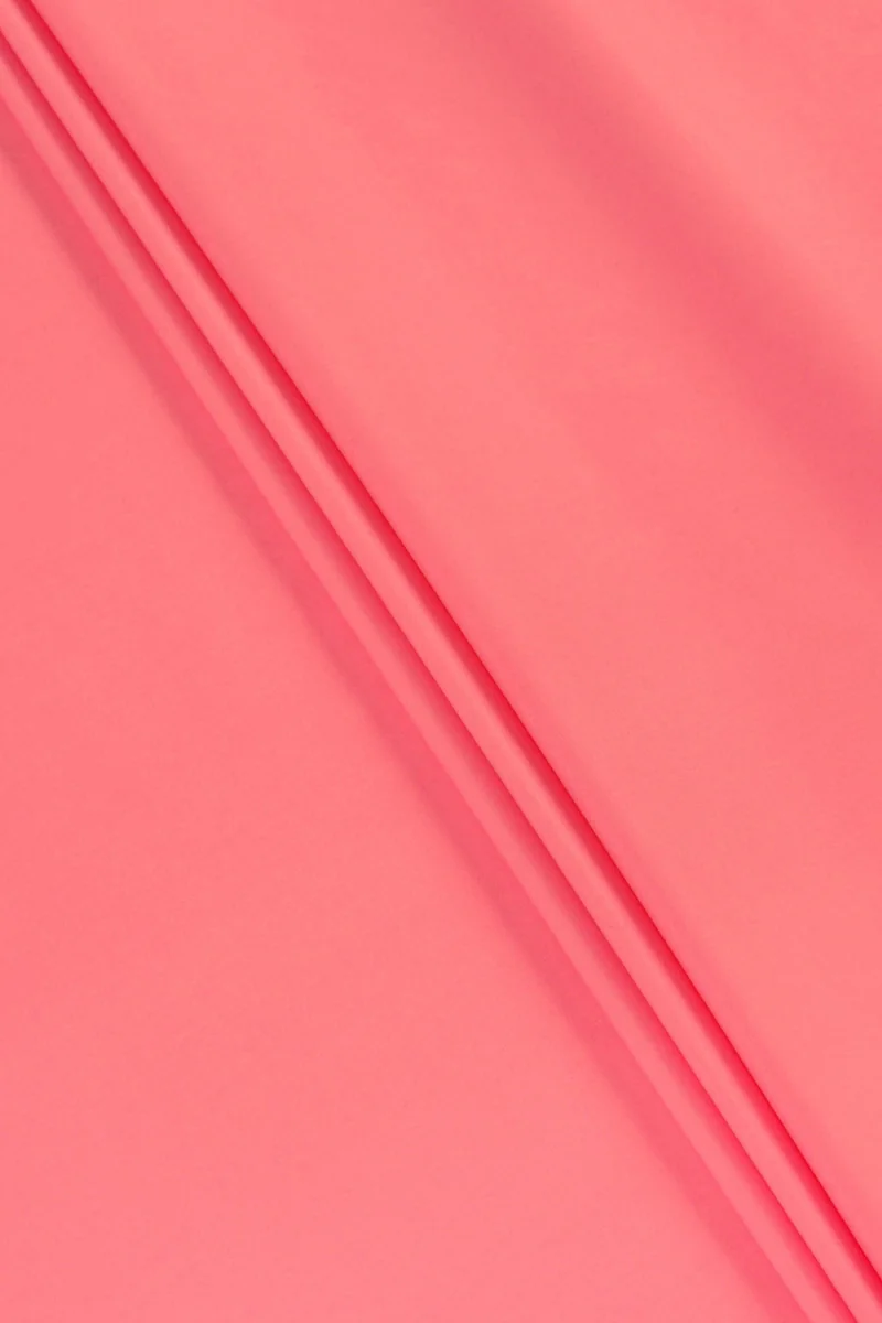Itaalia puuvillane kangas, millele on lisatud korallivärvi elastaani. Keskmise paksusega elastne kangas ja sile, õrnalt läikiv kude, mis on mõeldud kleidi, seeliku või pükste õmblemiseks. Väga hea kvaliteediga looduslik kangas, elastaani lisamine muudab selle kasutamise mugavamaks ja kortsub vähem. Asendamatu kangas kevadel ja suvel.