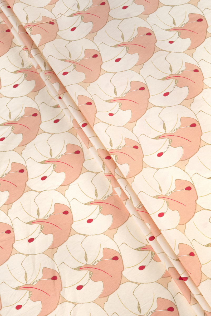 Itaalia puuvillane kangas beeži ja lõhega, suured lilled.