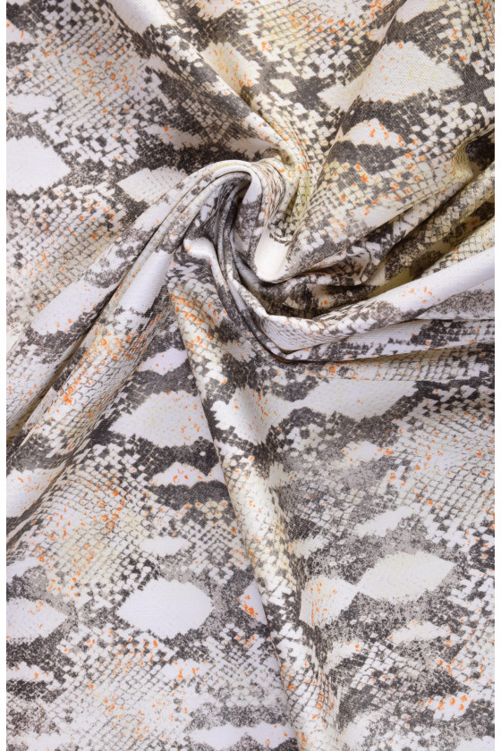 Itaalia, paks puuvill pythoni trükiga. Kergelt elastne kangas, millel on twill kudumine. Kangas sobib ideaalselt pükste, seelikute ja isegi jakkide ja mantlite jaoks.
