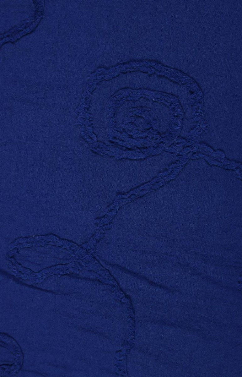 Ilus puuvill, mis on tikitud tumesinisega. Keskmise paksusega puuvill. Ideaalne kleitide jaoks.