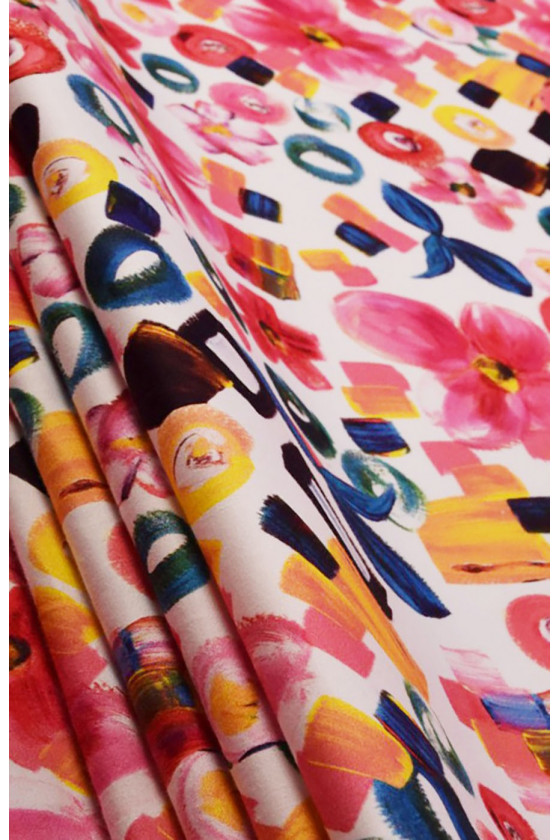 Ilus mustriline puuvill. Keskmise paksusega kangas, kergelt elastne. Ideaalne kleitide, pükste, kevadkomplektide jaoks.