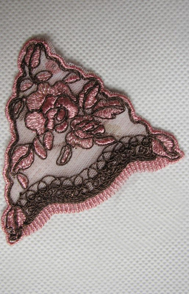 Pudukaupade lilleaplikatsioon määrdunud roosas ja pruunis.