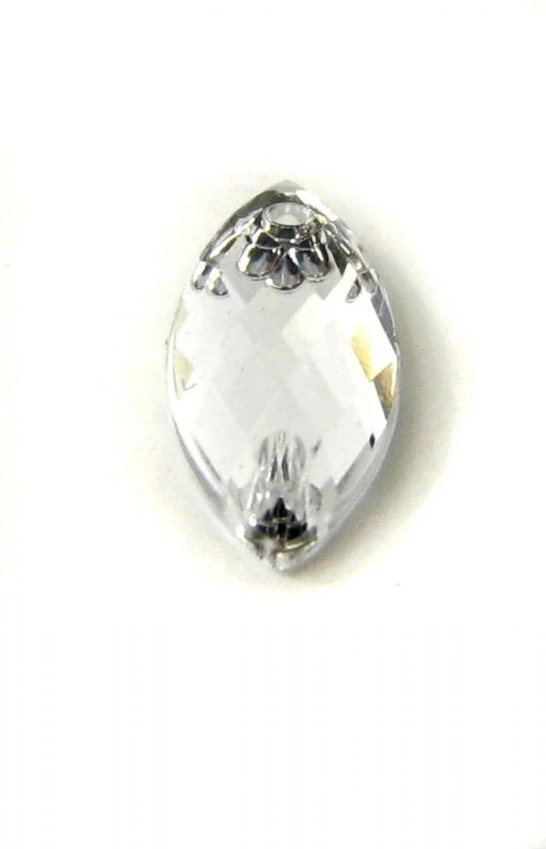 Ellipsikujulised rhinestones, mis õmmeldakse imiteerivatele looduslikele kristallidele. Suurus ca 12 mm.