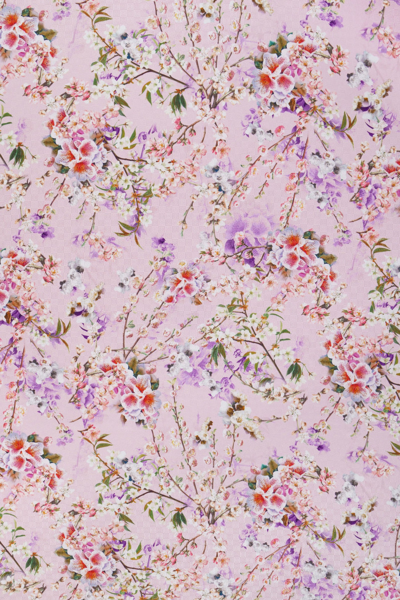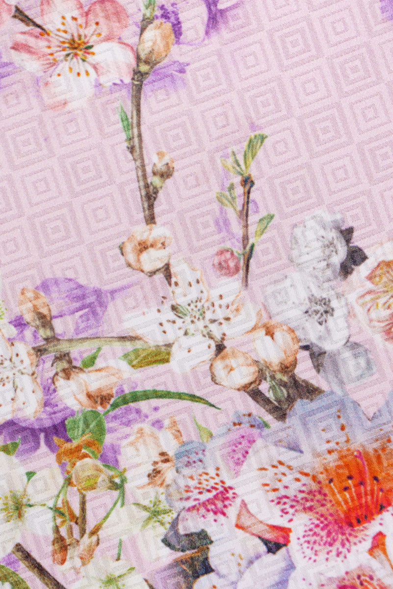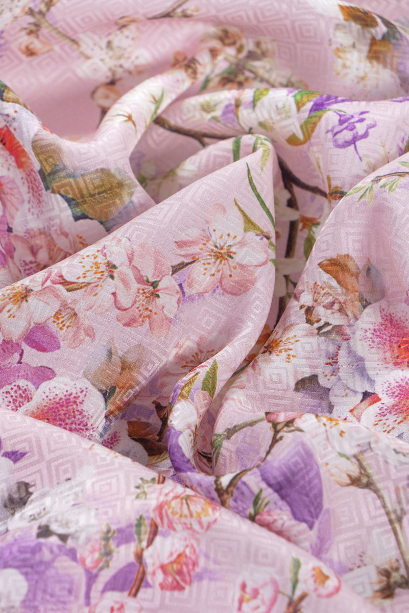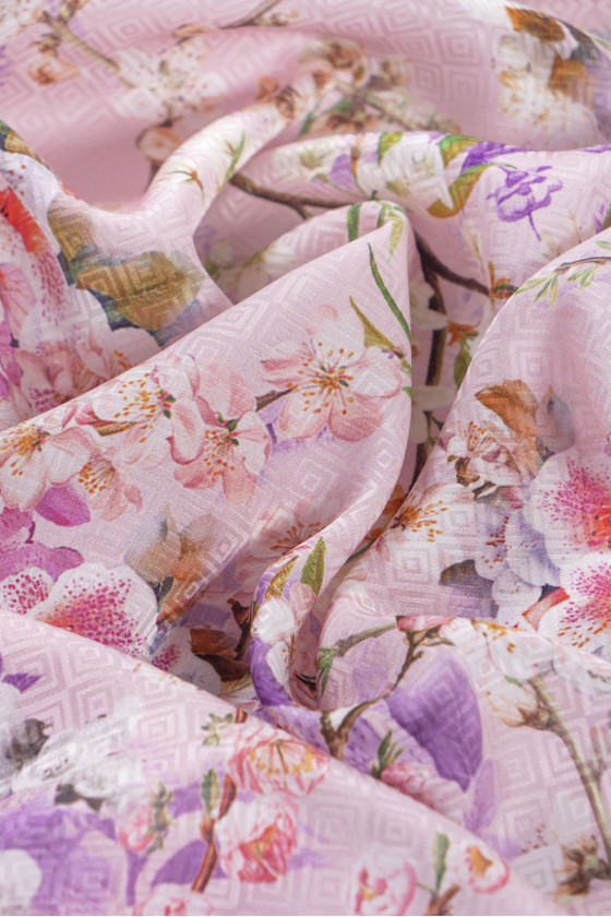 Jacquardi siid lilledega - heleroosa