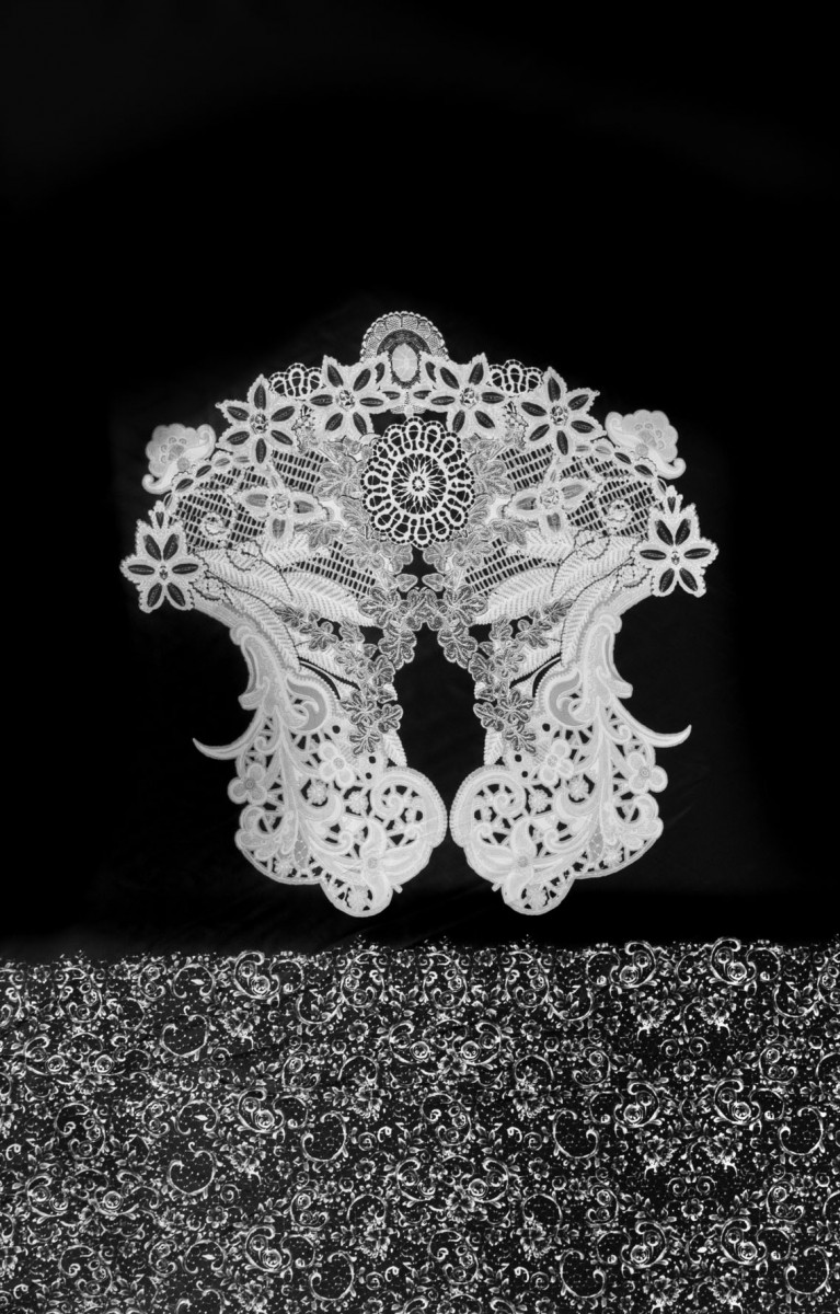 Itaalia 100% siidist satiin mustas, suure, halli idamaise mustriga 56 cm lai. Ühel küljel on see viimistletud 38 cm laiuse dekoratiivse äärisega, millel on väikeste lillede ja okste motiiv. Kangas on kupongis mõõtmetega 80 cm * 135 cm ja me õmbleme selle ringikujuliselt.