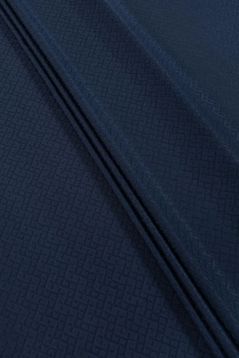 Itaalia 100% siidkangas mereväe sinine, jacquard kudumiskangas geomeetrilise motiiviga - teemandid. Mitteelastne, õhuke, kergelt läbipaistev, kerge kangas, millel on siidkangale iseloomulik sära.