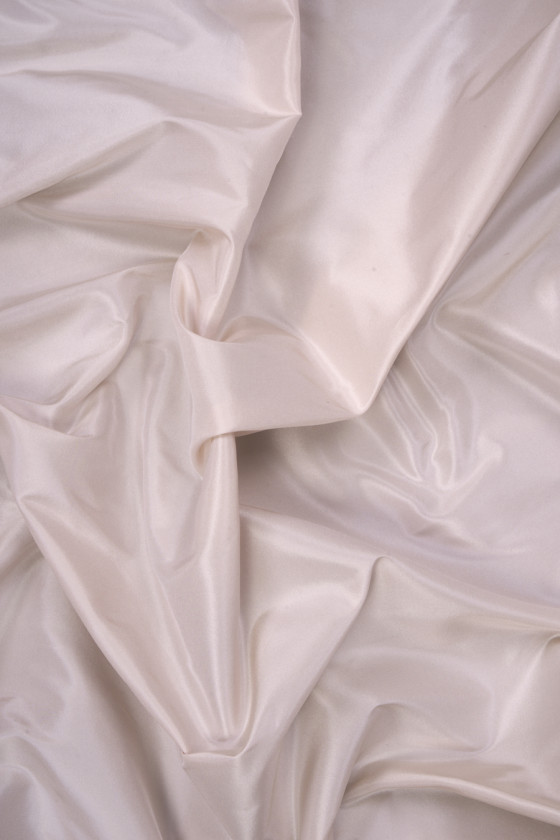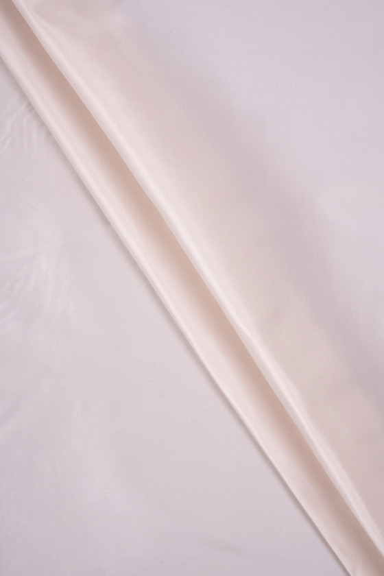 Itaalia 100% siidist taffeta kangas écru tilga roosaga. Naturaalne siidist taffeta on õhuke, kuid jäik kangas, millel on siidkangale iseloomulik õrn sära.