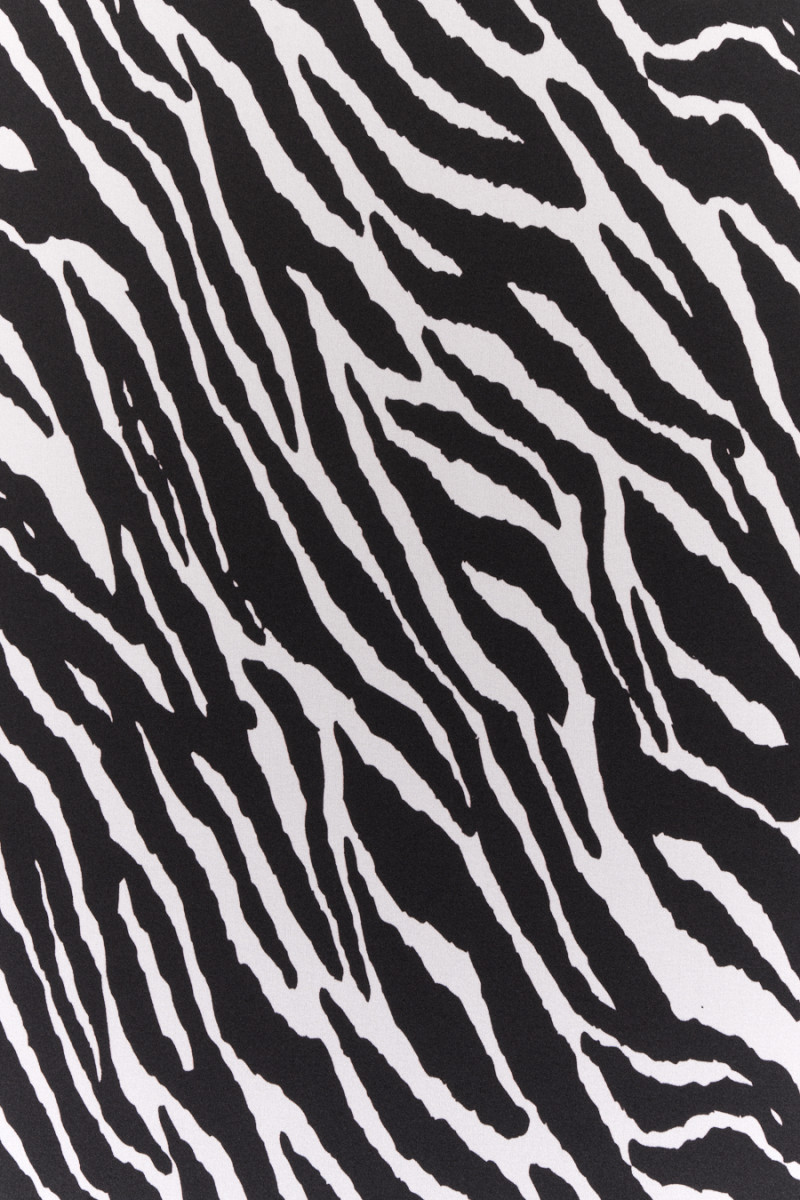 Itaalia siidist satiin, millele on lisatud elastaani mustvalges keskmise suurusega sebramotiivis. Kangas on elastne, voolav, katsudes õrn, pehme ja läbipaistmatu. Klassikaline, ajatu disain, mida saab kasutada õrna särgi, õhulise seeliku või kleidi võlumiseks.