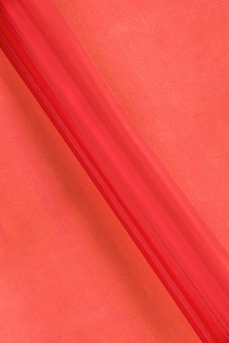 Itaalia 100% siidist organza kangas punase värviga. Naturaalsest siidist valmistatud organza on õhuke, läbipaistev, kuid jäik kangas, millel on siidkangastele iseloomulik õrn läige. Ideaalne kleidi, pluusi, särgi, seeliku õmblemiseks.