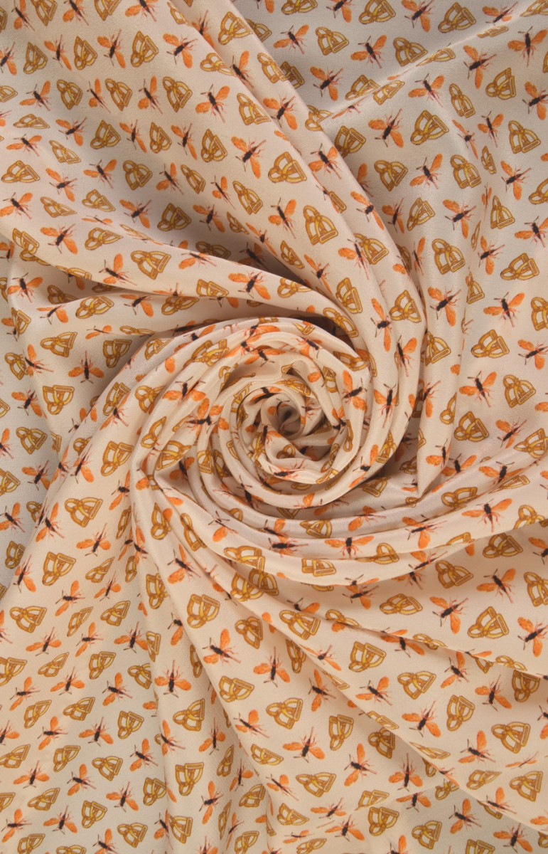 Siidist krepp on õrn, õhuke, kuid läbipaistmatu, poolmatt kangas. Seda saab kasutada õhuliste kleitide, õrnade pluuside, sallide, sallide väljameelitamiseks. Naljakas, väike trükk putukatest ja segajatest.