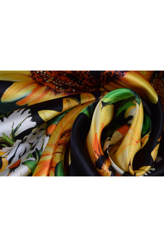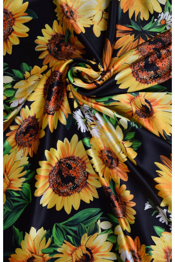 Siidsatiin on õrn kangas, sametine, õrna läikega. Seda saab kasutada õhuliste kleitide, õrnade pluuside, sallide, sallide väljameelitamiseks. Päevalille muster.