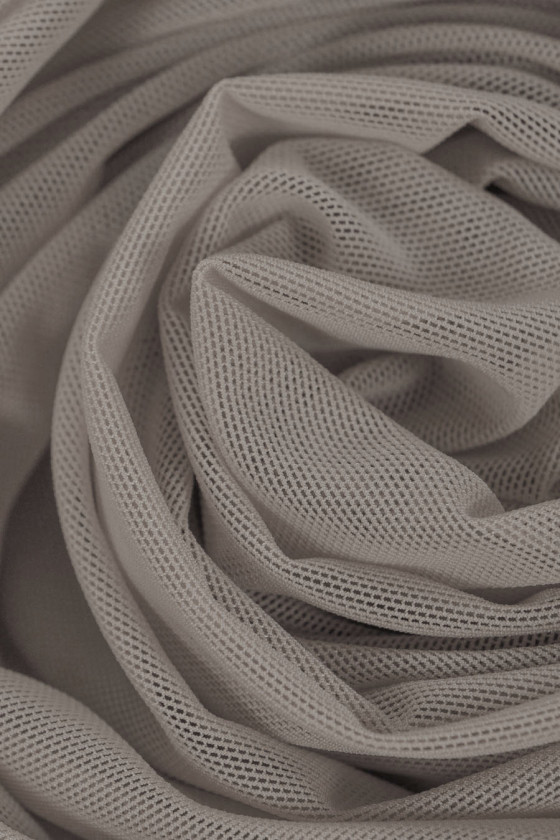 Pehme hall-beež võrk, mis on kootud väga väikestes võrkudes, õrn, ulatub mõlemas suunas.
