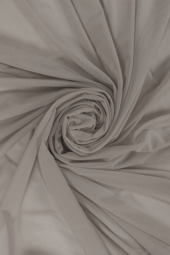 Pehme hall-beež võrk, mis on kootud väga väikestes võrkudes, õrn, ulatub mõlemas suunas. Seda saab kasutada õmblemiseks: tülli seelikud ja kleidid, õhtukleidid, pulma loorid, loorid, petticoats, tantsukostüümid, kaunistused