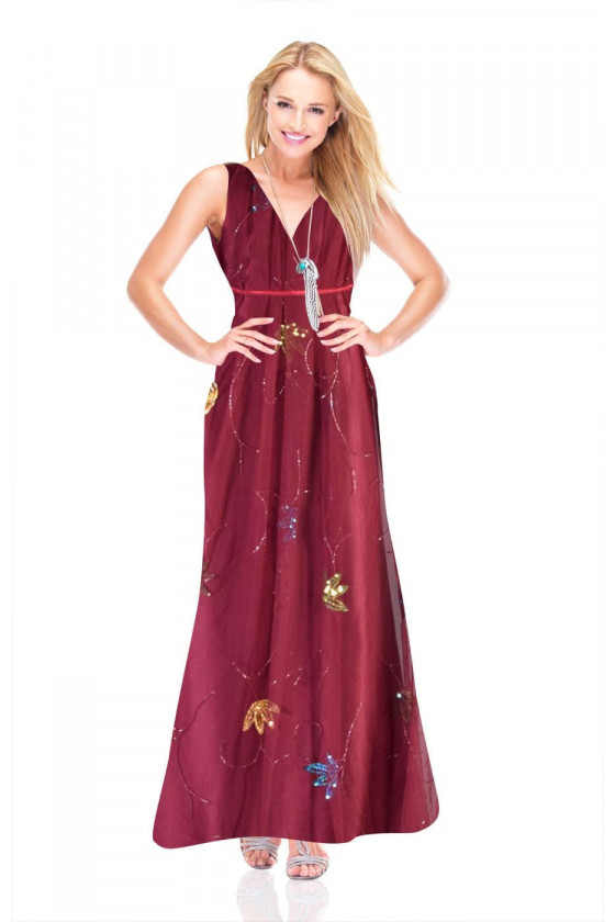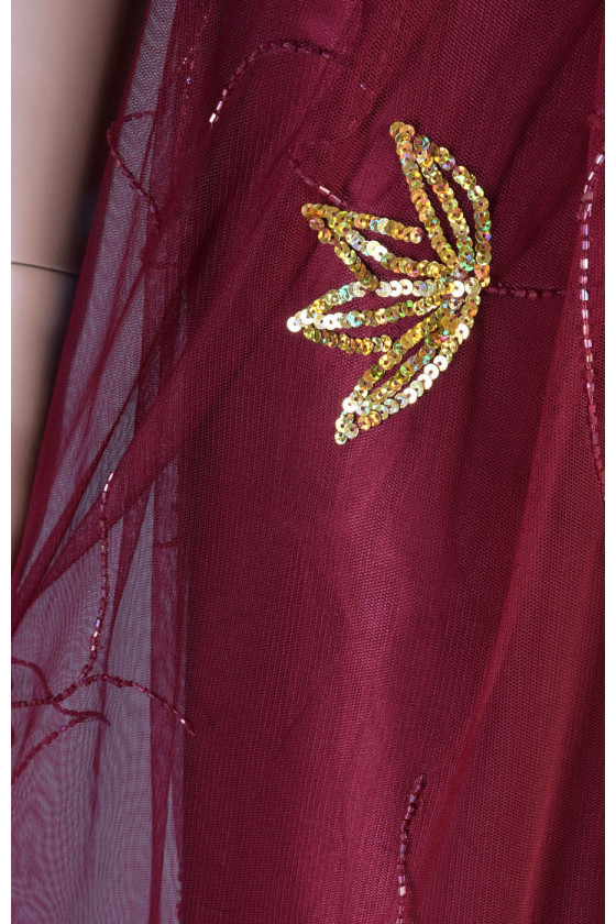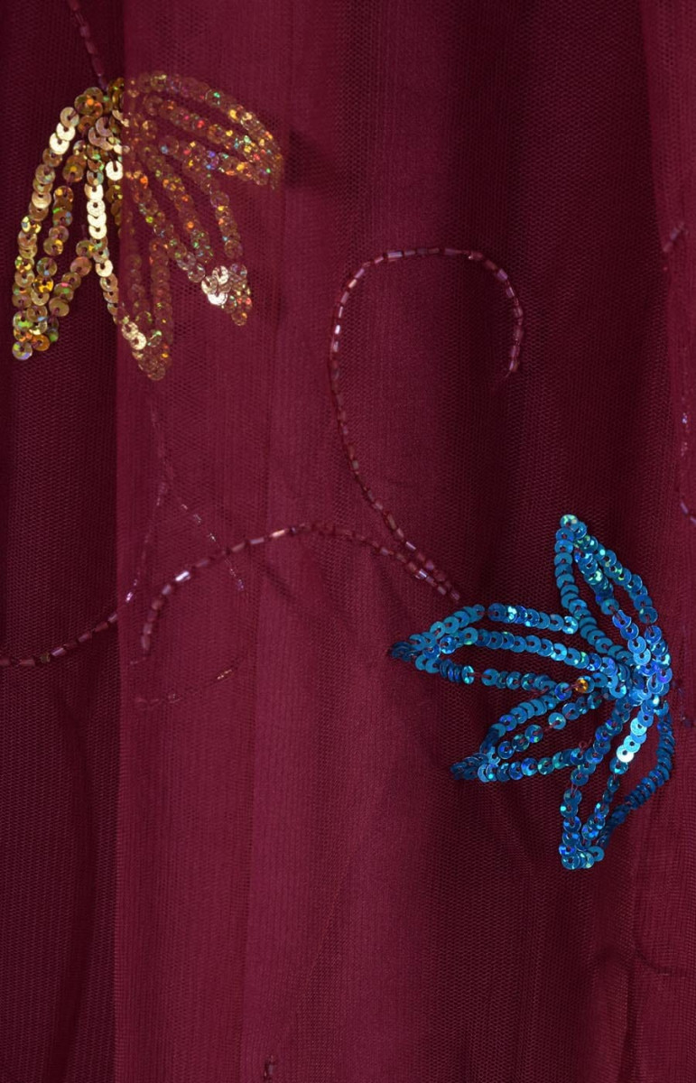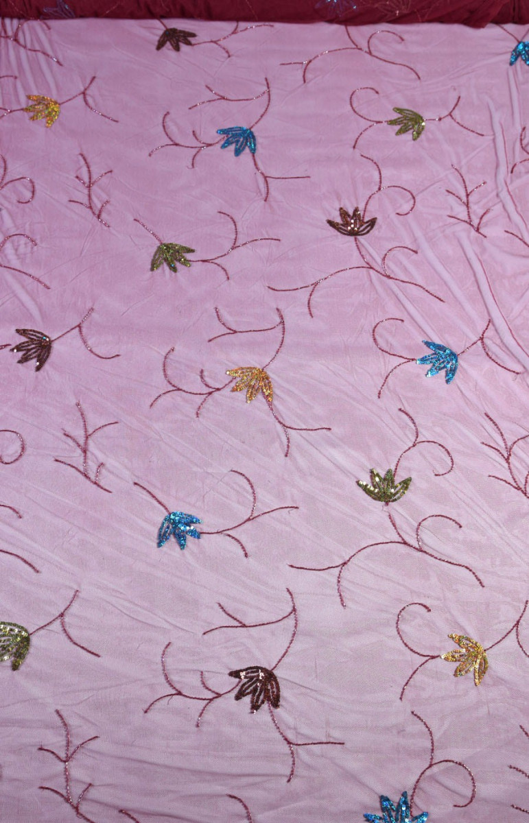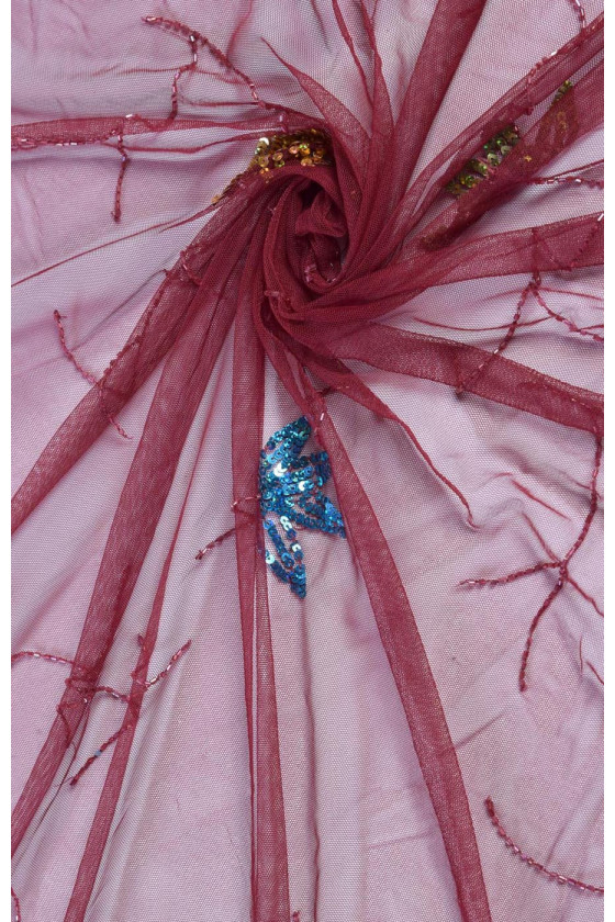 Itaalia tüllkangas Burgundia, värvilistest litritest ja helmestest tikitud lilledega. Originaalne ettepanek õhtuse pluusi või kleidi õmblemiseks.