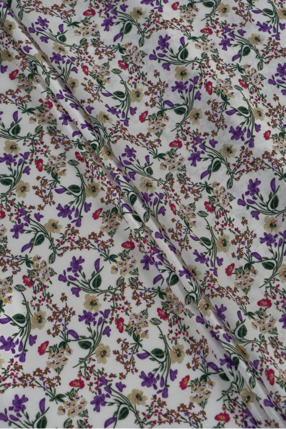 Itaalia kangas 100% viskoos väikeste värviliste lilledega ecru taustal. Pehme, voolav, õhuke, kuid läbipaistmatu kangas - ideaalne pluusi, kleidi, seeliku õmblemiseks.